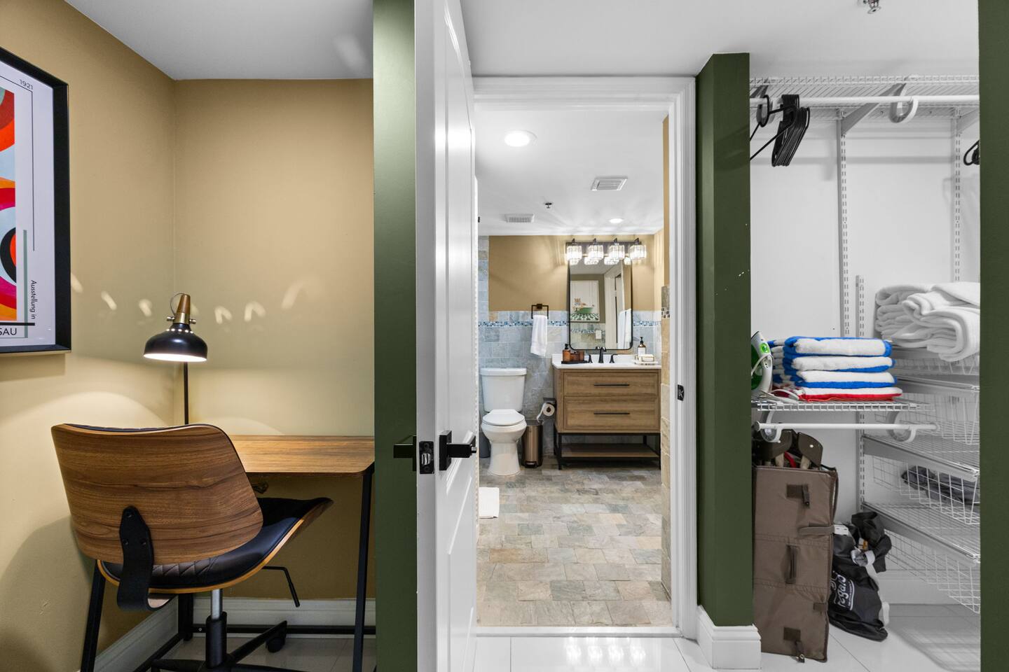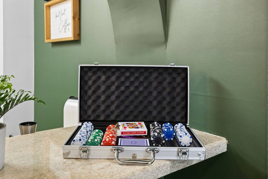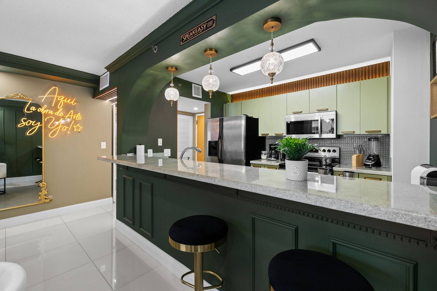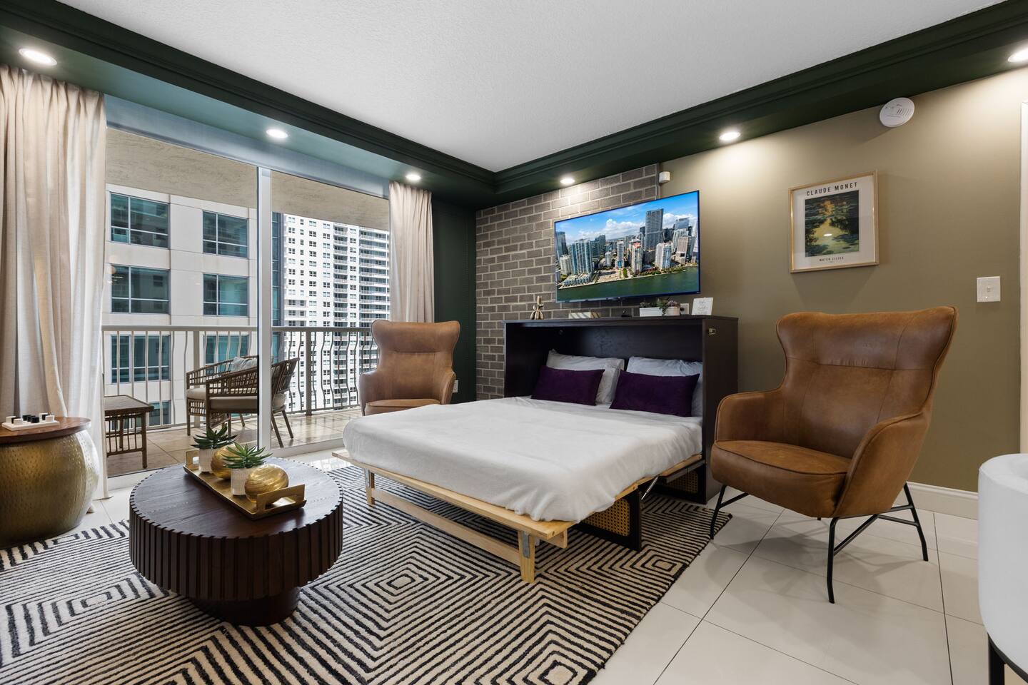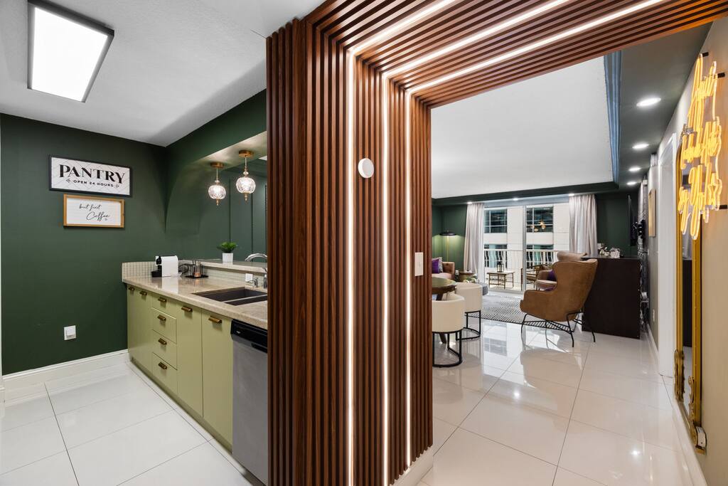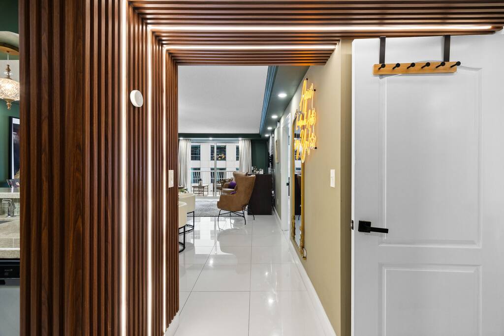 • ✨ Stylish Brickell Condo with speakeasy vibes & bay views • 🛏 Sleeps 6 comfortably – 2 queen beds + pull-out queen bed with a real medium-firm mattress • 🏊 Resort-style amenities: 2 pools, Jacuzzi, gym, sauna & game lounge • 🍸 Dining table flips into a poker table – perfect for game nights • 🌅 Private balcony with partial bay views for morning coffee or evening drinks • 🍳 Fully equipped kitchen with coffee maker, blender & essentials • 🧺 In-unit washer & dryer for long or short stays • 🚗 Free reserved parking space (rare in Brickell!) • 💨 Fast Wi-Fi & Smart TVs for work or streaming • 🏙️ Walk to Brickell City Centre, bars, dining & shops