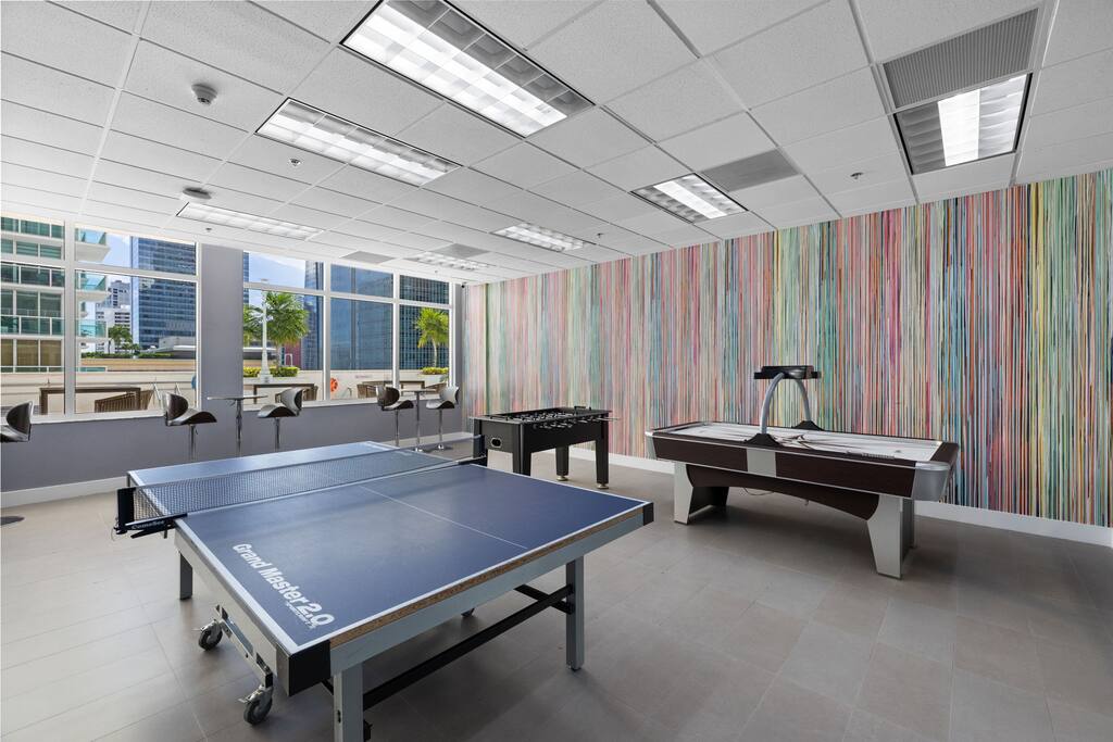 🏢 Guest Access All registered guests have full access to the 14th-floor Club amenities: • 🏊 2 Swimming Pools • 🛁 Jacuzzi • 💪 Gym & Fitness Center • 🔥 Sauna • 🎮 Game Lounge • 🛋 Social Lounge • 👶 Kids’ Playroom ⸻ 🚗 Parking • 1 reserved space on Level 8B included in your stay • Valet available for a fee • Garage access instructions sent before arrival • Steps from Biscayne Bay